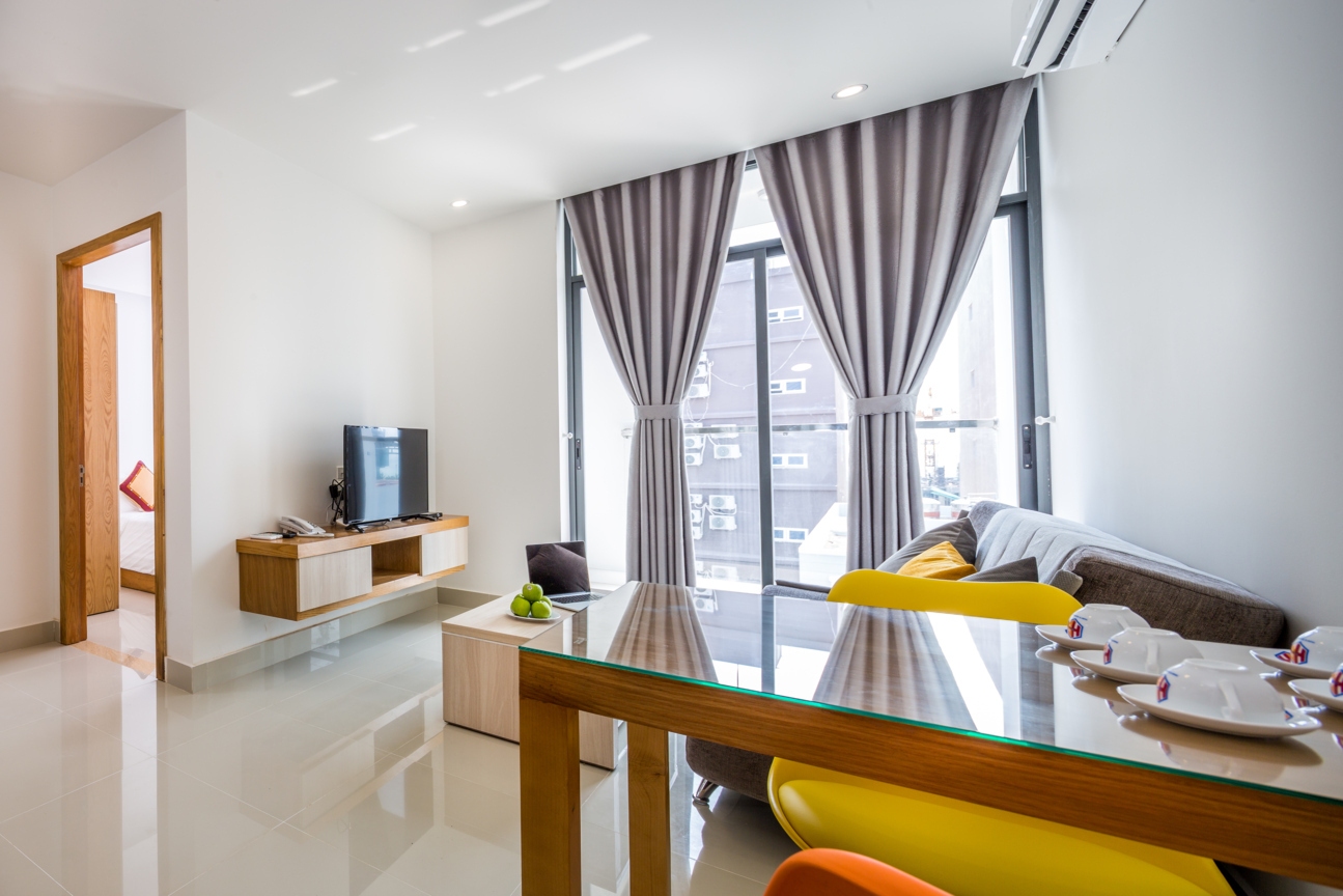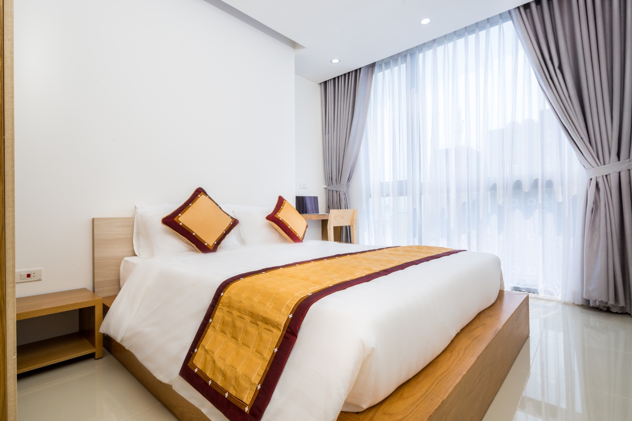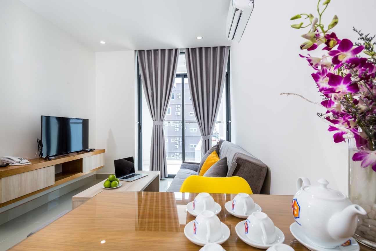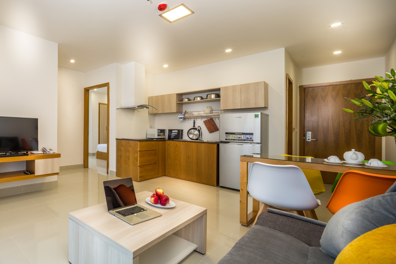 Với mục đích tiết kiệm chi phí cho những quý khách ở lại Đà Nẵng dài ngày (trên 1 tháng) HBPLUS Hotel & Apartments đưa ra phương án cho thuê căn hộ dịch vụ cao cấp như bảo vệ, camera an ninh 24/24, hệ thống PCCC hiện đại nhất Việt Nam tại thời điểm hiện tại, dịch vụ buồng phòng (miễn phí và tính phí)… Quý khách cũng có thể sử dụng những tiện ích chung của khách sạn như hồ bơi, phòng Gym (miễn phí), Sauna (tính phí), thưởng thức ẩm thực phong phú, đa dạng tại nhà hàng HBSKY. Chúng tôi có các loại căn hộ sau: